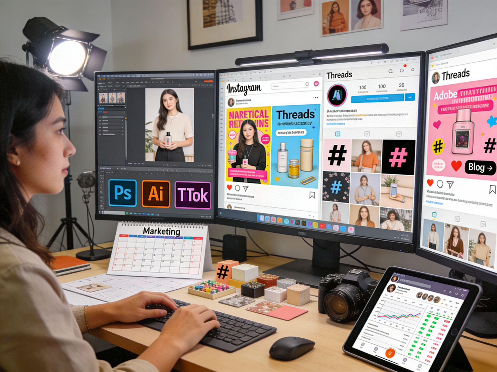 고객과 소통하며 상품 사진이나 컨텐츠를 제공받아 인블로그, 인스타, 쓰레드에 홍보할 컨텐츠를 제작합니다.